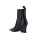 Calfskin Boots by Valentino Garavani featuring slip-on ankle boots, a shiny leather design, an elongated toe, a draped detail on the shaft, and a wide leather heel.