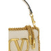 Valentino Garavani’s Locò Leather Shoulder Bag is an elegant and versatile accessory. It has a removable top handle via two snap hooks, a front magnetic flap closure and a three-dimensional plaque with the iconic embossed VLogo, plated in antiqued brass. The chain shoulder strap is removable, while the interior offers a single compartment and a slit pocket. The rigid design and quality materials make it a must-have of luxury and style.