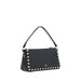 Valentino Garavani’s small Rockstud shoulder bag is a bold and distinctive accessory that combines elegance and character. Made of grained leather, the bag features studs decorating the flat handle, flat shoulder strap and profiles, giving it a rock-chic look. The zippered top closure ensures convenience and security, while a hook-and-eye adds a functional touch to the design. On the back, the brand’s iconic monogram is elegantly printed, making the bag a symbol of high fashion.