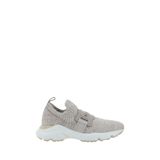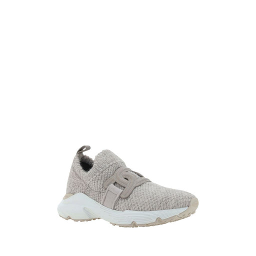 Original price $833.14Current price $642.71| /Kate Sneakers by Tod’s, slip-on style, textured sole, round toe, mélange knit weave, iconic leather chain detail with stitching on front.