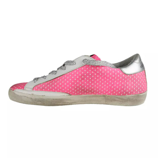 Golden Goose Pink Mesh Leather Sneakers with Glitter Accents