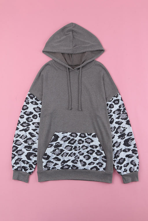 Leopard Drawstring Hoodie with Kangaroo Pocket