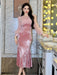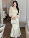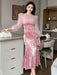 Christmass Party Elegant Luxury Mermaid Dress Women Clothes Chic Casual Sweet Puff Sleeve Skinny Midi Party Birthday Holiday