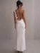 Holiday Party Floral Draped Backless Maxi Long Dress For Women Fashion Spaghetti Strap Sleeveless Bodycon Evening Party Dress Elegant