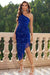 Sequin Asymmetrical Fringe Hem One-Shoulder Dress