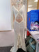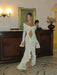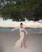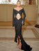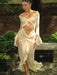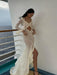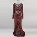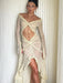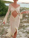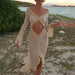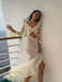Deep V Neck Sheer Dress For Women Elegant Slim Hollow Out Dress Femme Holiday Beach Sexy Ruffle Slit Evening Ladies