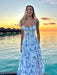 Women's Summer Floral Print Dresses Sweet Elegant Midi Holiday Dress Casual Slit Blue Lace Up Dresses