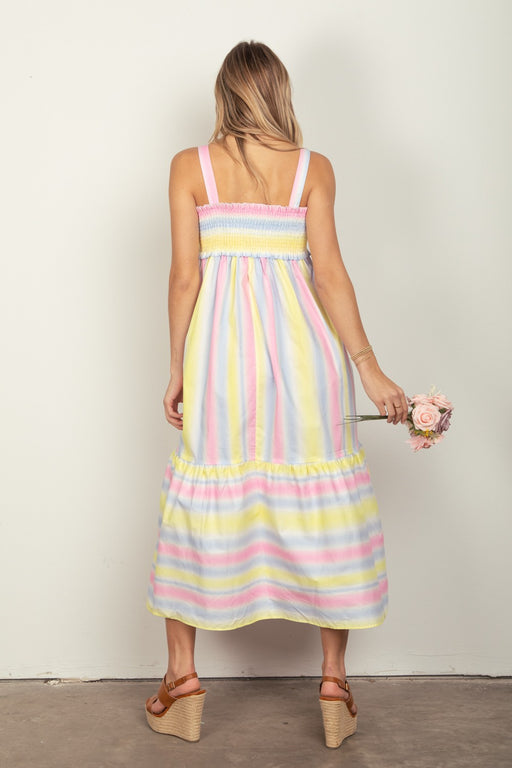 VERY J Striped Woven Smocked Midi Cami Dress