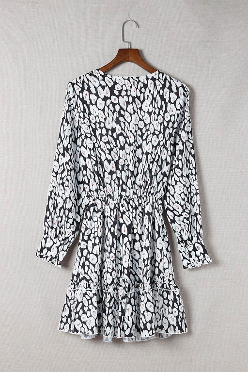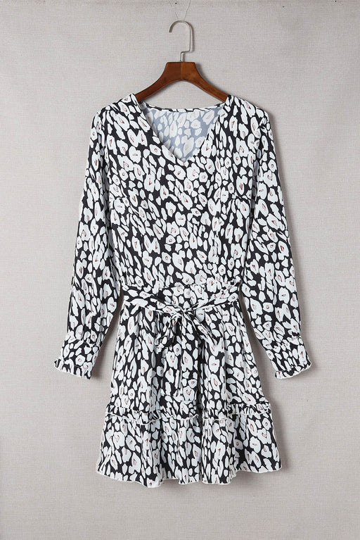 Leopard Belted Puff Sleeve V-Neck Dress