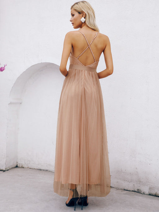 Belted Crisscross Back Plunge Tulle Dress
