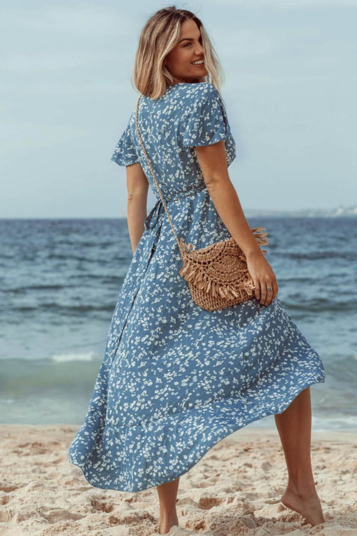 Ditsy Floral Short Sleeve Tie-Back Dress