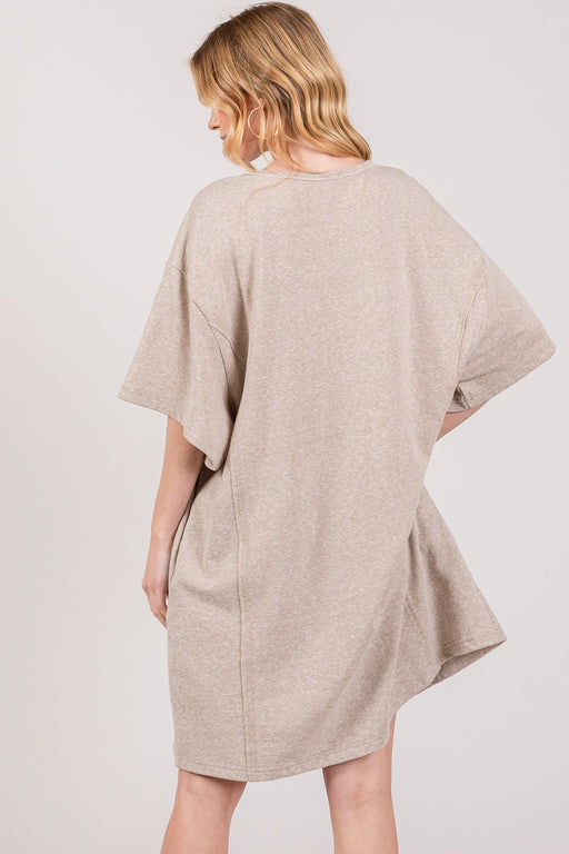 Zenana Washed Nochted Rolled Short Sleeve Dress