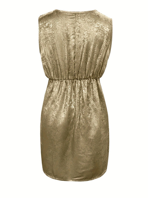 Rhinestone Round Neck Sleeveless Wrap Dress