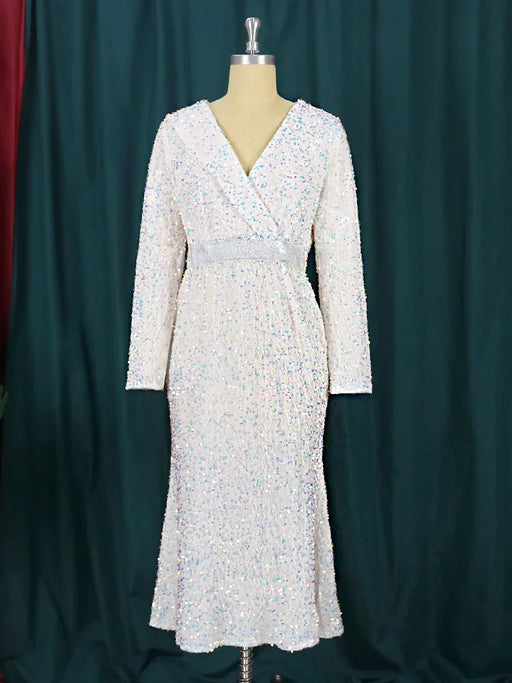 Large Size Sequin Dress Sparkly Glitter Velvet Midi Bodycon Dress Party Clothes
