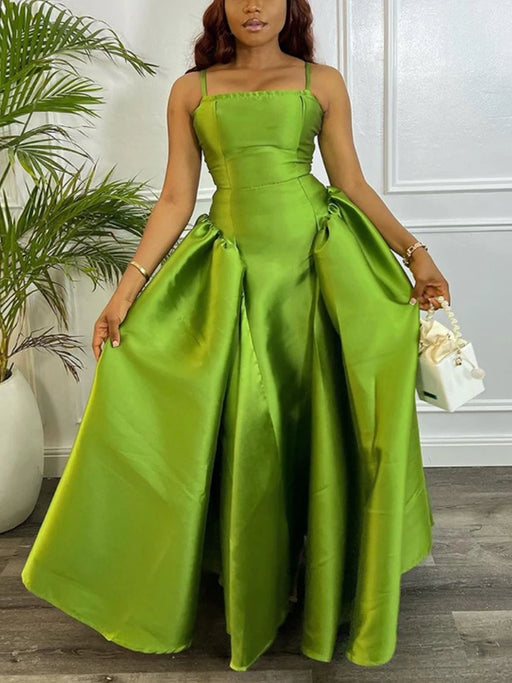 Vintage Cute Women A Line Party Dresses Puffy Big Swing Green Strap Dress Ball Gowns Elegant Backless