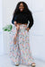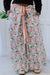These palazzo pants are perfect for your next vacay! They have a muted tropical print, with elastic in the back, a contrasting tie, and pockets. Pair with a white top to make them really stand out!