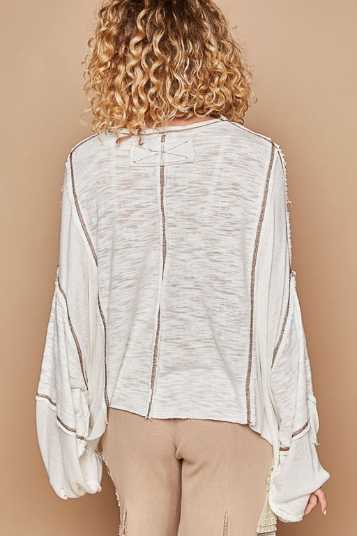 POL V-Neck Lace Balloon Sleeve Exposed Seam Top