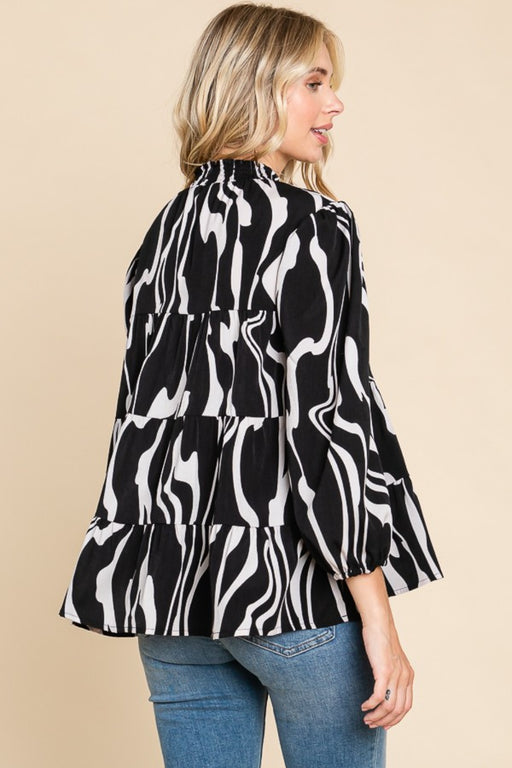 Culture Code Printed Smock Neck Tiered Blouse