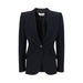 Blazer Jacket by Alexander McQueen, single button front closure, structured shoulders, two pockets with geometric flap for closure, double back slit, buttoned cuffs, peaked lapels, regular fit.