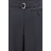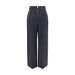 Wool Pants by Alexander McQueen, wide-leg style, pinstripe design, front button and zipper closure, two side slash pockets, welt pocket on back, adjustable martingale on back.
