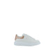 Calfskin Sneakers by Alexander McQueen, featuring a lace-up front closure, a round toe, a front logoed press stud tab, a logoed heel label, and a platform sole.
