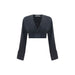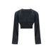Top by Alexander Wang, long-sleeved cropped style, elasticized waistband with iconic brand monogram detail on front, V-neck on front, monochrome pattern, regular fit.