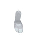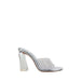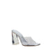 Brigitte Glass Sandals by Amina Muaddi, geometric toe on front, semi-transparent chunky heel, front band with transparent design, press-on logo insole.
