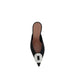 Amina Muaddi’s silk satin Camelia Pumps feature an elongated toe embellished with a jewel-embossed rhinestone and diamante appliqué. The leather stiletto heel adds elegance, while the logo-embossed leather insole completes the design with a distinctive and refined touch.