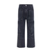 Cotton Cargo Pants by Amiri, denim design, front zipper and button closure, two side welt pockets, two slit patch pockets on back, patch cargo pockets on front and side panel, belt loops waistband, iconic branded signature leather patch with press-stamped applique on back.