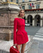 Christmas Party Double Bow Long Sleeve Sexy Mini Dress For Women Fall Winter Solid High Waist Bodycon Club Party Dress Elegant