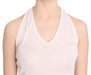 Discover sophistication with a touch of allure in this Elegant White Halter Casual Tank Top by GF Ferre. Crafted for those who appreciate the fusion of contemporary style and comfort, this pristine piece is the epitome of chic casual wear. It’s perfect for creating a laid-back yet polished look, suitable for a variety of occasions from brunches to evening soirées.