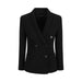 Virgin Wool Blazer Jacket by Giorgio Armani featuring a double-breasted front button closure, spear lapels, two front patch welt pockets, a front welt pocket, a back slit, structured shoulders, and a regular fit.