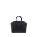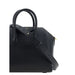 Calfskin Antigona Hand Bag by Givenchy, grained leather design, geometric pattern, two rigid top handles, top closure by zipper with double slider, contrasting iconic brand monogram on front, adjustable and removable shoulder strap, attached support feet at base of bag.