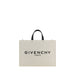 Cotton G-Tote Handbag by Givenchy, featuring geometric design, double stiff leather top handle, adjustable and removable webing shoulder strap, iconic brand monogram printed in contrast on front.