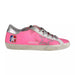 Elevate your casual style with these stunning leather sneakers, draped in delightful pink mesh fabric and dazzling with silver glitter laces. The iconic stitched star logo and glossy silver patent leather heel add a touch of glamour to your every step. Crafted meticulously in Italy, these sneakers are designed not just for comfort but also for striking a statement with their exquisite rubber sole.