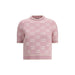 The Gucci wool top is an elegant and refined piece, perfect for those seeking a sophisticated yet versatile look. The cropped model with short sleeves gives a young and modern touch, while the ribbed crew neck and hem ensure a comfortable and well-defined fit. The iconic logo of the brand, embroidered in contrast all-over, adds a distinctive and recognizable element, elevating the design of the top with a touch of class.