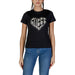 Discover the Guess Active JULIA RHINESTONE short-sleeve t-shirt for women. Made from a high-quality blend of 95% cotton and 5% elastane/lycra, this t-shirt offers exceptional comfort and a perfect fit. The design features an elegant Guess logo adorned with rhinestones, adding a touch of sparkle to your everyday look. Perfect for any occasion, it pairs effortlessly with jeans or casual trousers for a trendy and stylish outfit. Don’t miss the chance to wear this versatile and fashionable piece, ideal for the spring and summer seasons.