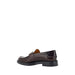 Calfskin Loafers by Tod’s, slightly elongated round toe, rubber block heel, iconic metal plaque appliqué on front tray, logo-embossed insole.